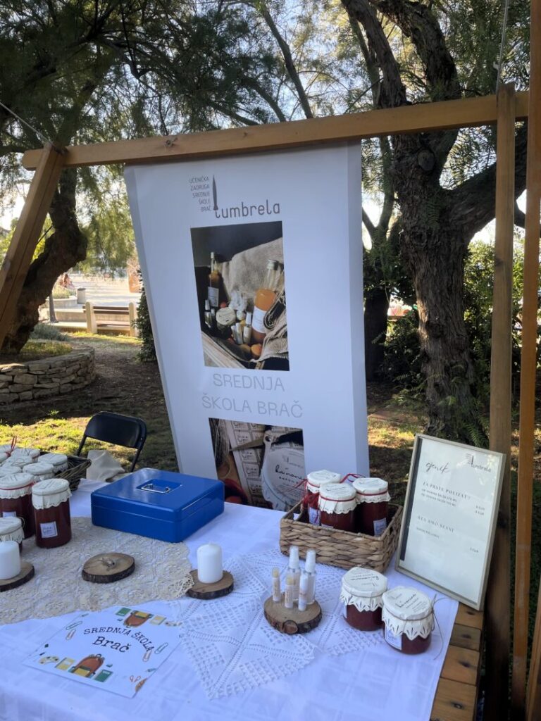 Učenička zadruga Lumbrela drugu je godinu zaredom sudjelovala na FOR FLAG festivalu održivog razvoja. Uz poznatu i tradicionalnu ‘Ka’Noninu’ šalšu te prirodne kozmetičke proizvode, imali smo priliku predstaviti i jedan potpuno novi, potpuno drugačiji proizvod naših vrijednih automehaničara – zadrugara i njihovih mentora: ručno izrađeni peškafondo!