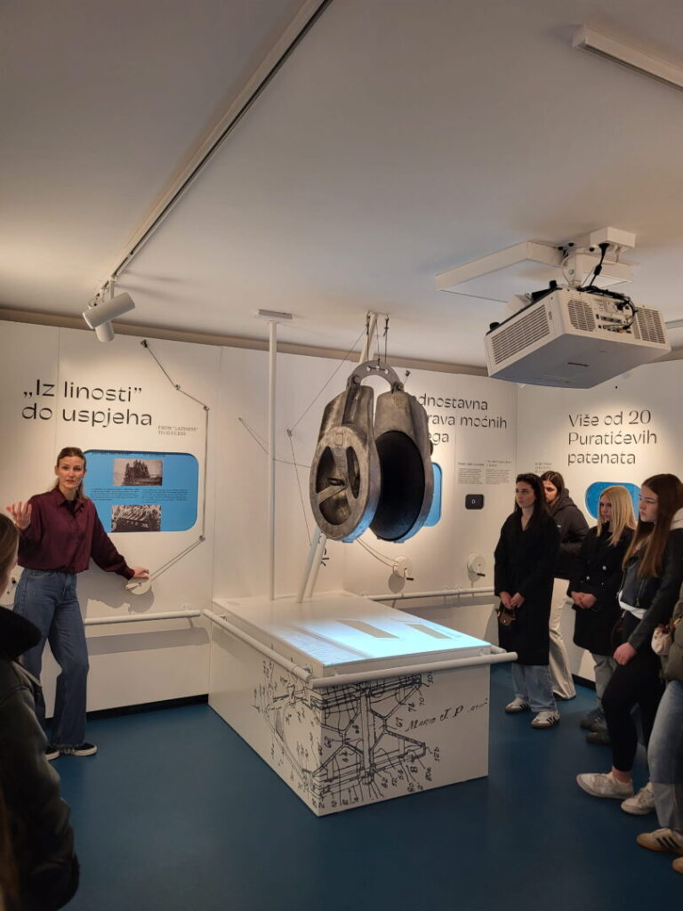Prvo su posjetili Kuću od 5 dolori u Sumartinu, posvećenu životu i radu Marija Puratića. Uz stručno vodstvo učenici su se upoznali s njegovim životnim putem, inovatorskim radom te izumom mehaničkog koloturnika koji je unaprijedio ribarsku industriju. Posebno ih je zainteresirala činjenica da se prikaz mehaničkog koloturnika nalazi na kanadskoj novčanici od 5 dolara, što svjedoči o važnosti i međunarodnom priznanju ovog izuma.