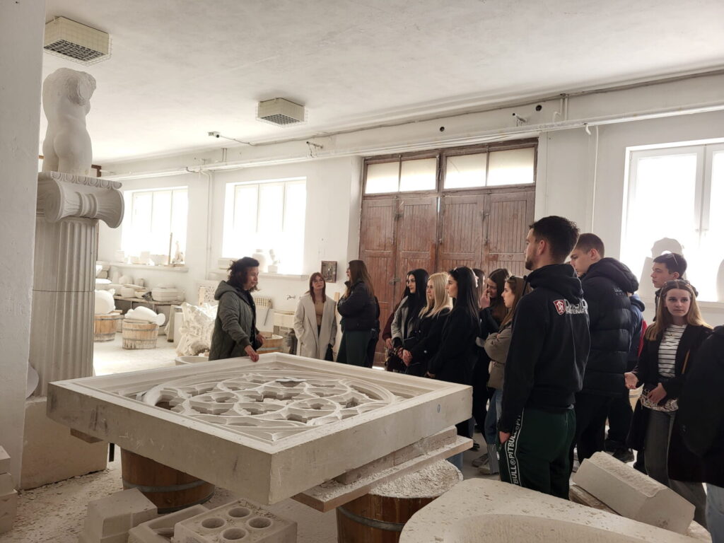 Nakon Sumartina, učenici su posjetili Klesarsku školu u Pučišćima. Tijekom obilaska nastavnici i učenici škole demonstrirali su u radionici različite tehnike obrade kamena, približivši učenicima Srednje škole Brač tradicionalne i suvremene metode klesarskog zanata. Ravnateljica škole provela ih je kroz školske prostore te ih upoznala s programima, načinom rada i bogatom tradicijom ove jedinstvene obrazovne ustanove.