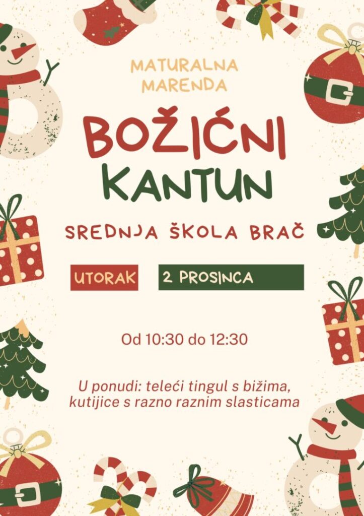 Zahvaljujući Turističkoj zajednici Supetar, naši učenici zadrugari, a posebno maturanti, naredna će četiri adventska utorka provoditi na Božićnom kantunu! Dođite na ukusnu marendu i kolačiće koje pripremaju naši maturanti. Prikupljena sredstva od prodaje pomoći će učenicima u organizaciji maturalne zabave. Vidimo se već sutra 10:30-12:30!